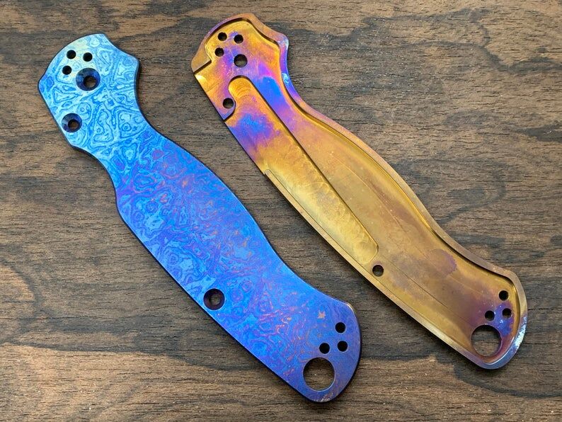 Flamed Titanium Knife Scales for PM2 Spyderco Paramilitary 2