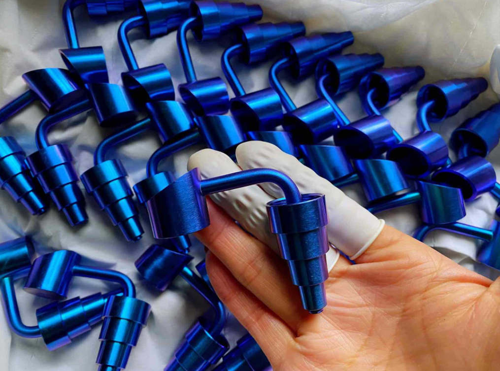- Anodized Titanium: The beautiful colors on this nail were produced from anodizing the titanium. By adjusting the oxide levels, a variety of perceived colors can be generated. It is not a dye or a coat. It is simply a perceived color, so none of the properties of the titanium will be compromised. It will retain the same durability and strength against corrosion and wear.