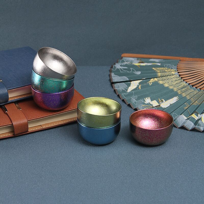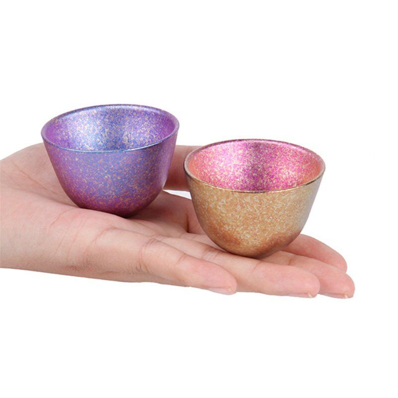 Pure Titanium Double-Layer Small Tea Cup Shot Glass Ice Flower