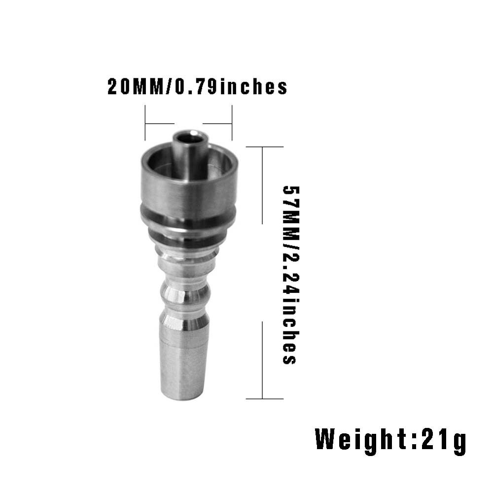 This titanium nail is made of highly heat-resistant titanium grade 2 with changeable male and female grinding fits on all respective bongs with 10/14.4/18.8mm standard grinding. It has big nail head and thick glass tube, so it can hold about 2.5ml oil.
