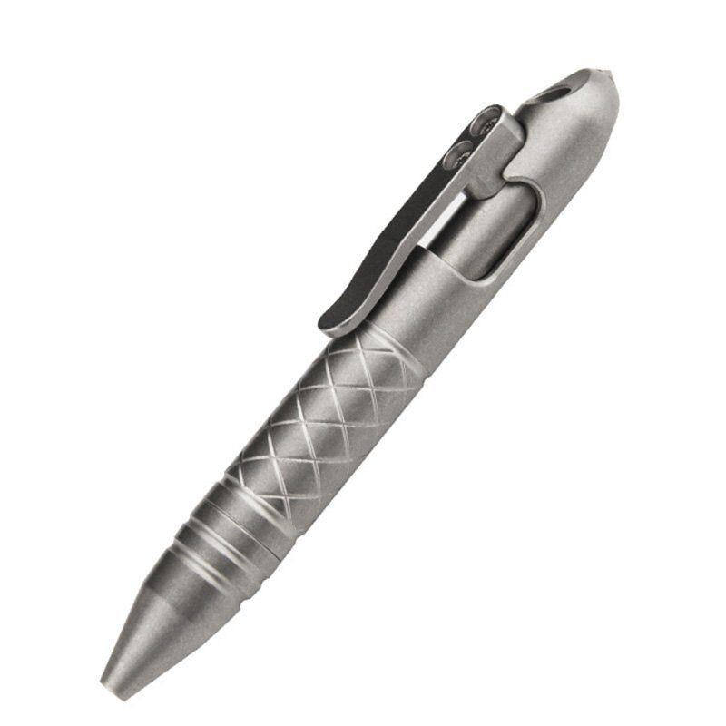 This pen features a titanium pocket clip which can be used to attach the pen to your pocket, notebook, etc. The clip features dual retention prongs, which ensure it stays in place in your pocket.